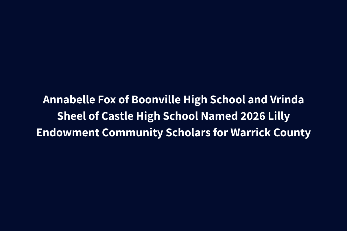 Warrick County Community Foundation is pleased to announce the recipients of the 2026 Lilly Endowment Community Scholarship for Warrick County: Annabelle Fox, Boonville High School and Vrinda Sheel, Castle High School. Lilly Endowment Community Scholars are recognized for their community involvement, academic achievement, character, and leadership. "All of this year’s Lilly Endowment Community Scholarship Program recipients from Warrick County exemplify excellence both in and beyond the classroom. Their dedication to academics, community engagement, and leadership stood out throughout the scholarship process, reflecting a level of maturity and purpose well beyond their years," said Alysia Rhinefort, Regional Director of Community Engagement and Impact. Each Lilly Endowment Community Scholarship provides full tuition, required fees, and up to $900 per year for required books and equipment for four years of full-time undergraduate study leading to a baccalaureate degree at any eligible Indiana public or private nonprofit college or university. Scholars also join the Lilly Scholars Network (LSN), which connects them with resources and opportunities to lead on campus and in their communities. Both the scholarship program and LSN are supported by grants from Lilly Endowment to Independent Colleges of Indiana (ICI). "I am so incredibly grateful to be among those selected for this scholarship. This not only financially supports me and my family, but inspires me to continue serving others, pursuing academic excellence, and impacting my community. My future plans include attending Purdue University to obtain a bachelor’s degree in chemical or environmental engineering," said Annabelle Fox, Lilly Endowment Community Scholar. In nominating Warrick County’s Lilly Endowment Community Scholars, the committee considered academic ability, community involvement, extracurricular activities, work experience, honors and awards, personal statement and goals, essay, and impromptu essay and interview. After narrowing the field of applicants, nominees were submitted to Independent Colleges of Indiana (ICI), the statewide administrator of the program, for final selection. Since its inception in 1997-1998, Lilly Endowment has supported this program with tuition grants totaling more than $505 million, benefiting over 5,400 Indiana students. The program’s primary purposes are: To raise the level of educational attainment in Indiana. To increase awareness of the beneficial roles Indiana community foundations play. To encourage and support Lilly Scholars’ engagement with Indiana leaders to improve quality of life statewide. About the Warrick Community Foundation Established in 1998, the Warrick County Community Foundation is a charitable resource devoted to our local community. We help people make meaningful gifts that improve life in Warrick County today and for generations to come. One of nine county affiliates of the Community Foundation Alliance, the Community Foundation exists to help caring people give back to the causes and community they care about most. The Community Foundation Alliance is a 501(c)(3) public charity accredited by the National Standards for U.S. Community Foundations® (National Standards) program representing operational effectiveness to foster excellence in community philanthropy. Since the inception of this program, the Community Foundation Alliance has consistently achieved National Standards accreditation. The Community Foundation Alliance provides management, administrative, and development expertise and services so that every local affiliate can focus on promoting philanthropy, building endowment, and grantmaking, making a difference in their community For Good. Forever. About Lilly Endowment Inc. Lilly Endowment Inc. is an Indianapolis-based private philanthropic foundation created in 1937 by J.K. Lilly Sr. and his sons Eli and J.K. Jr. through gifts of stock in Eli Lilly and Company. The Endowment supports community development, education, and religion, with a special commitment to Indianapolis and Indiana. About Independent Colleges of Indiana (ICI) Founded in 1948, ICI serves as the collective voice for Indiana’s 29 private, nonprofit colleges and universities. ICI institutions employ over 22,000 Hoosiers and generate a local economic impact of over $5 billion annually. Students at ICI colleges have Indiana’s highest four-year graduation rates and produce 30% of Indiana’s bachelor’s degrees while enrolling 20% of its undergraduates.